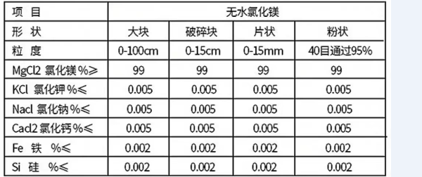 三、無水氯化鎂99含量,98含量無水氯化鎂的參數(shù)